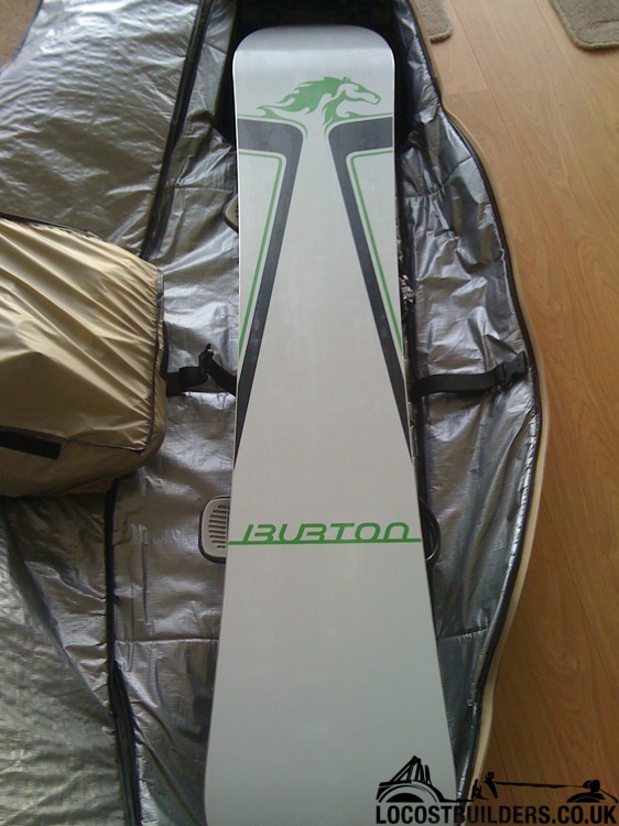 Burton 167cm Bullet Snowboard (Mustang Edition), Burton Freestyle Bindings and Burton 166 roller-bag with footwear compartment. Excellent condition -