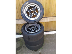 4 x 13" alloys (6j) with slicks. The tyres are used.