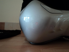 One very small scratch on the chin piece, circled on the last photo, very difficult to see, but wanted to mention it.