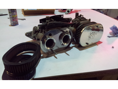 Twin dellorto DHLA40 carbs mounted on a caterham short xflow manifold. I also fitted brand new short trumpets and new k&n filters however the