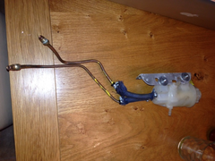 I have a saab twin brake fluid reservoir with a ally mounting bracket and a pair of flex pipes mounted onto copper brake lines and fittings for lucas