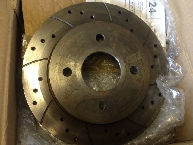 1) 253 mm, 108mm PCD, Cosworth Rear Brake Discs, drilled and groved, used for about 50 miles, £70 posted? (£130 POSTED ON EBAY)