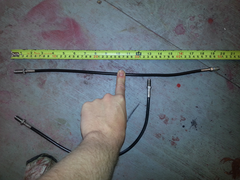 Brake flexy pair. Orig supplied by russbost, end to end length of 19.5", m10 x 1.0 bulkhead fitting to M10 x 1.0 swivel fitting. New only used