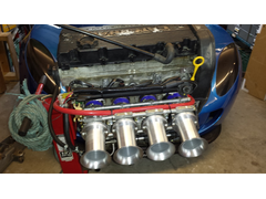 Throttle bodies - these are GSXR motorbike throttle professionally adapted to fit onto an alloy manifold. These have eight injectors so can run in