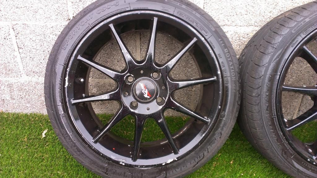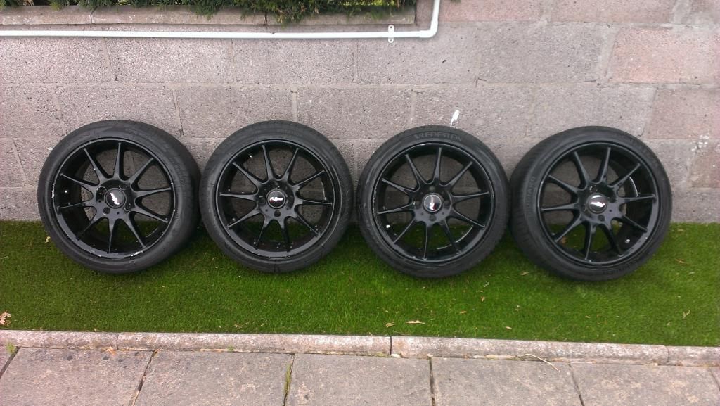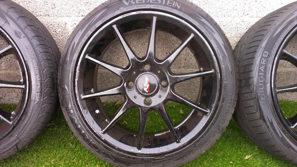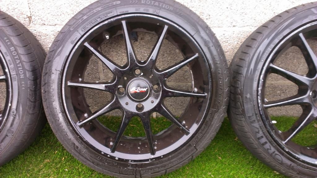 For sale a set of 16" Kosei alloys, 4 x 108, ET 35 offset. Tyres are 195/45/r16. Two tyres are vredestein sportrac and two are budgets all with