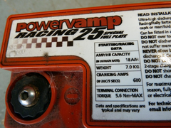 Powervamp 25 Racing Battery. Holds charge ok, kept in garage as a spare to jump from. Starts Zetec or Crossflow perfectly fine.