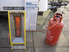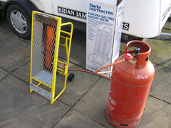 Propane cylinder (20Kg) is new, cracked open to briefly test the heater this afternoon.