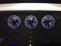 3 Gauges, stepper motor driven, 'full sweep calibration' on power up, blue or white LED back lit