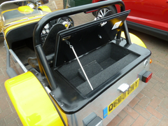 Chassis - Book Locost, with McSorley improvements. Cortina Mk5 front uprights, Escort Mk2 rear axle (3.89:1). Lockable boot space. Total