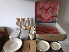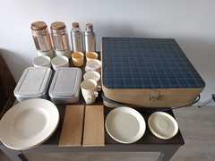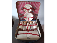 Up for sale VINTAGE FULL PICNIC BASKET SET FOR 4 MADE IN DDR "POUCH", AS NEW.