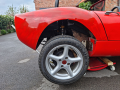 Five spoke 15-inch wheels. Five off. Ford 4 x 108 PCD with 63.4mm centrebore. 7 x 15 inch with ET35. Five of them - four with red carbon style centrecaps and one with a Westfield centre cap (possibly came off a Westie originally). Stamped Made in Italy but not sure of brand. They're all unmarked and the paintwork is in excellent condition - they don't need refurbishing. Tyres are all uncracked Ventus Plus 4 in 205/50-15 86V but they're dated 2007 so I wouldn't use them (and won't pass IVA because of age). £150 for all five.
