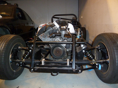 The car is a rolling chassis, engine is in. No cooling / fuel system / electrics in place.