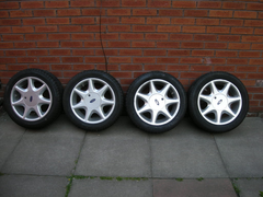 They have good 195 tyres, ET38, PCD 108 and although a bit scuffed are in good condition