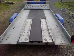 Fountain C100 4 wheel, braked car trailer, fully galvanized chassis with non slip centre decking.
