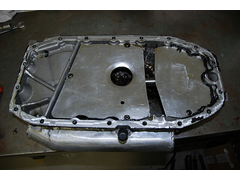 I made the new bits in 3mm Alu' plate and chopped the sump down and then he welded the new bits to the old bits and I gave him a tenner for his