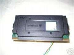 It's a slot based cpu with Pentium III written on it. It might have a fan fastened to the back of it or a lump of finned ali.