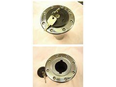 Try boat chandlers they do black plastic lockable ones, good quality and price. Deck fillers in their name.