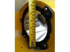 I've had a measure up, they are 138.5mm across the lens, the mounting ring aperture is 135mm across, and my other lamps are 134.8mm across the