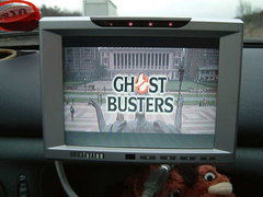 Two Screens headrest mountable OR freestanding for a hotel room maybe and a dvd player has car and mains adaptors