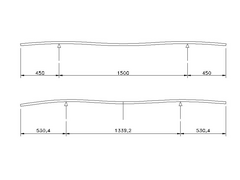 Using the support span as an average of Bessel and Airy points (0.558L) the drawing looks like this for a length of 2400mm.