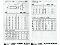 A Zuess chart is a good investment as well , gives loads of info on pitch,diameter and hole sizes for tapping amongst other things. Any good