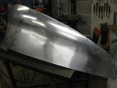The wing is just about finished now. I made it from 1050A half hard pure aluminium 16 gauge. It was certainly not the easiest panel I've ever