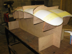 The fibreglass wing was placed on the buck to check for accuracy.