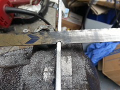With an old hacksaw blade, using a Dremel or the edge of a grinding wheel, cut a groove in the straight edge a little wider than