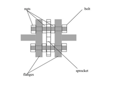 shaft welded into on of the flanges, with the sprocket and the other flange bolted on.
