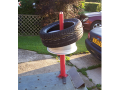 I have a couple of perished tyres and a wheel without a tyre on. I'll put it on and take it off again from the inner edge