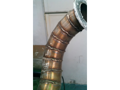 +1 for the paper templates thing! I made a 4" bend for my air intake from the side of a washing machine by cutting out the segments drawn using