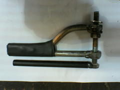 Now you need 3 hands... ... hold the bar, hold the bolt head with a socket, and turn the nut with an open-ended spanner. I used to brace the bar