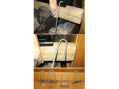First I had to make a tool to bend them: a piece of scaffolding plank with a hole drilled to take the bar. A piece of 1" OD tube held in place by