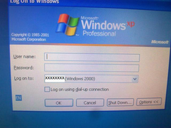 So if you have a fresh install of XP then you or the IT bloke must have joined the domain. Are you saying others do not have the (Windows 2000) suffix