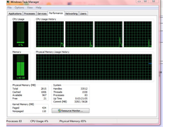 Task manager shows a lot of processes (mine is currently at 60 odd processes and I'm quite active), plus the free memory is very low which