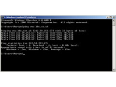 Click Start-> Run. Type 'cmd' and hit enter. When the command prompt window appears, type 'ping www.bbc.co.uk' and hit enter.