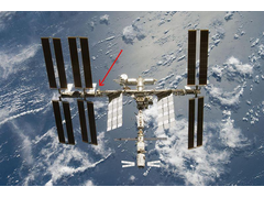 It is a bit of the space station, and the little speck is a space-walking astronaut doing some maintenance. Allegedly.