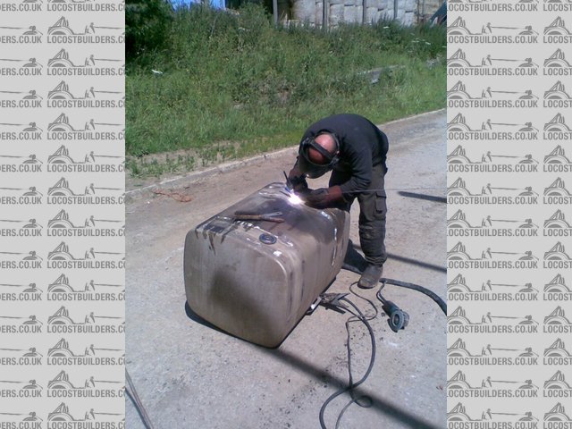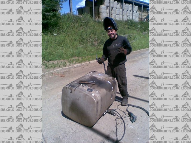 Here's Widz trying to kill us all by welding up a half full fuel tank... ok, it was diesel, but I still felt the need to hide after taking the