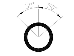 I think it means a minimum of 50 degrees and has to come down at least to the 150mm above the centre plane
