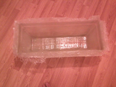Next brainwave was to get a window box form B&Q and cut the flange off to give me a shape for the boot compartment i taped this up as well and
