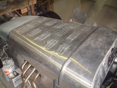 vents as shown below with the size and lines adjusted to suit the lines of the bonnet and scuttle. I installed some aluminium mesh and painted it