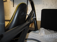 What I did was sent the hoop back to Steve and had him move the mounts further in together so they would line up with the belt holes but also recline