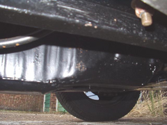 3 1/2 inches under the sump, 4 1/2" front axle line and 5" back of the chassis