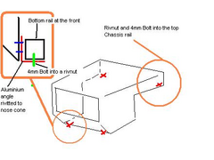 I have bonded and rivited a strip along the inside front of the cone. It has a couple of Tabs that align with the steering rack mounting plate. Then I