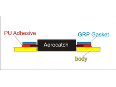 gasket over the top of the catch (on the inside of the bodywork) - and then bonded together with PU adhesive. The result is a very neat catch which is