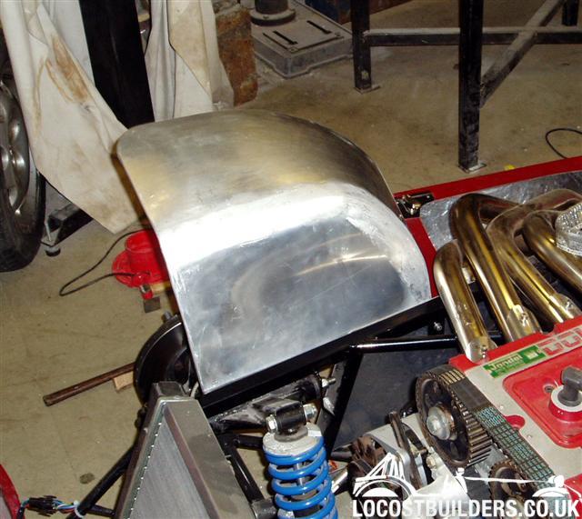 To prevent the engine bay from being sprayed with muck it seemed a good thing to build in a pair of inner wings.