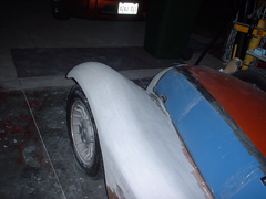 The bonnet is origanal mgb and I am trying to do the sides of the bonnet in metal. The wings and nose are being done with just a male buck and
