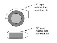 the real world but steeper angles cause the air flow to separate causing turbulence and drag.