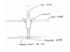 rivnut to the bottom rail at M3. Screw the stud into the rivnut untill it protrudes and becomes tight. Rivit the other side with a hammer.