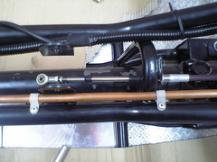 I've put the gear cable as further as possible, but even so the bearing eye is not aligned with the lever moutings (in the pic, the cable is half